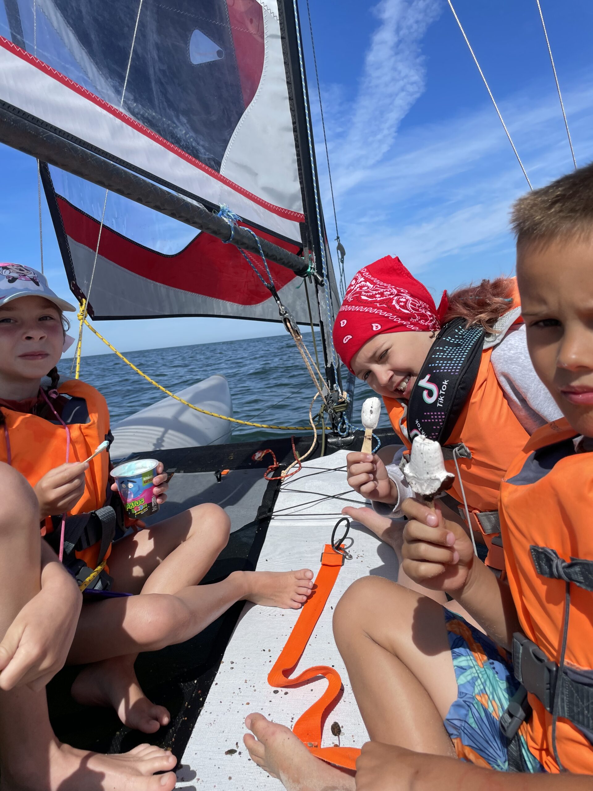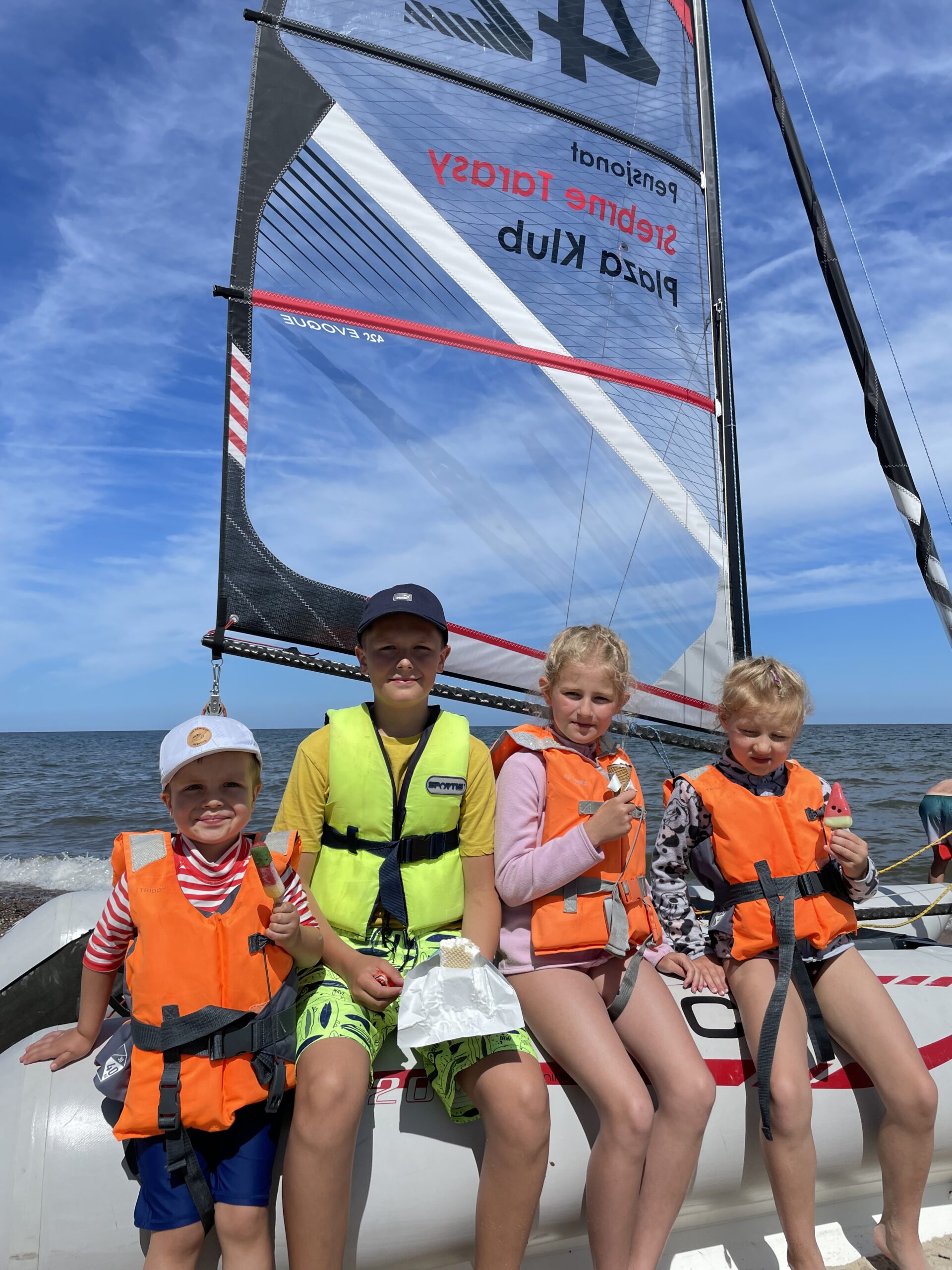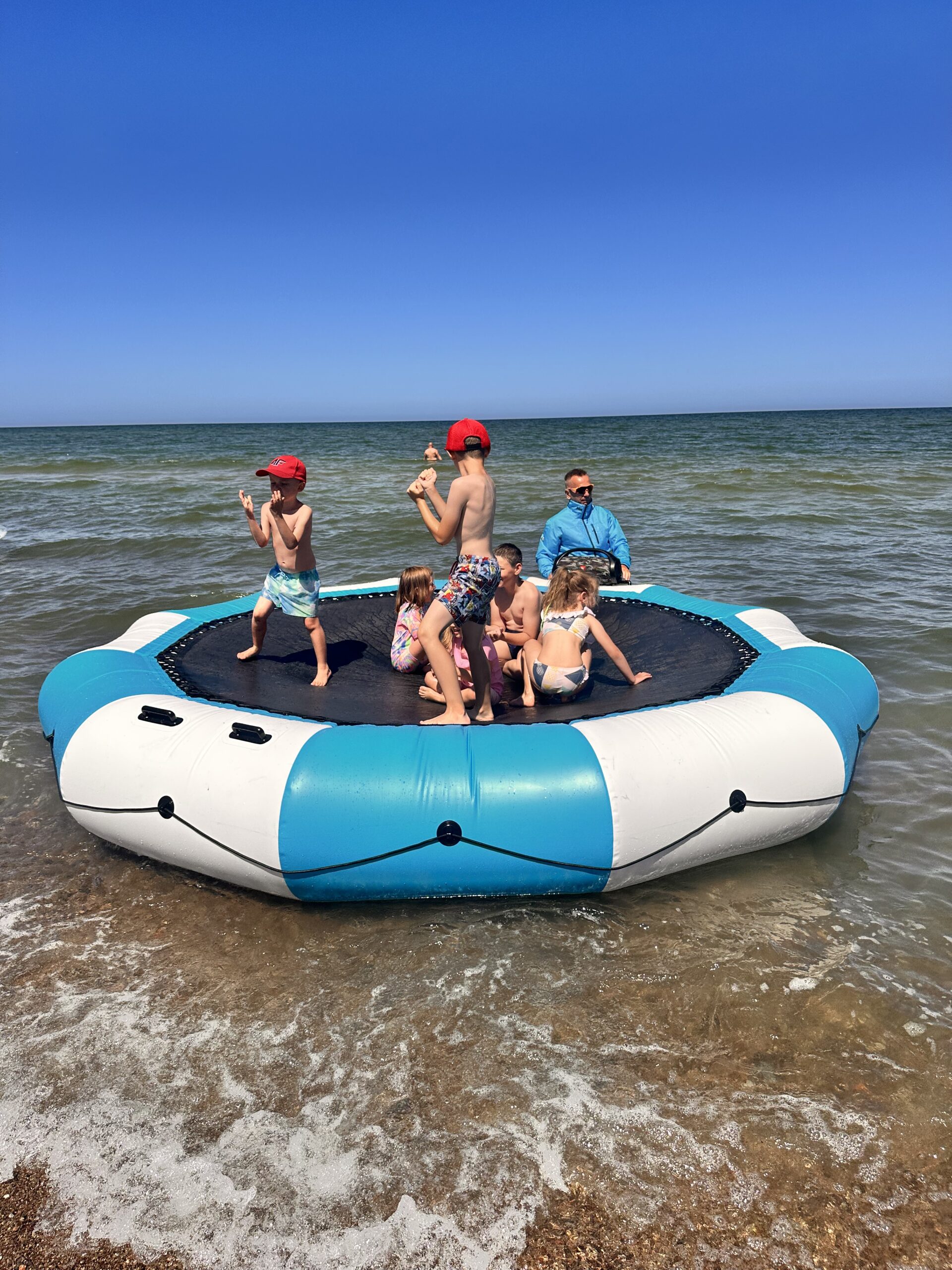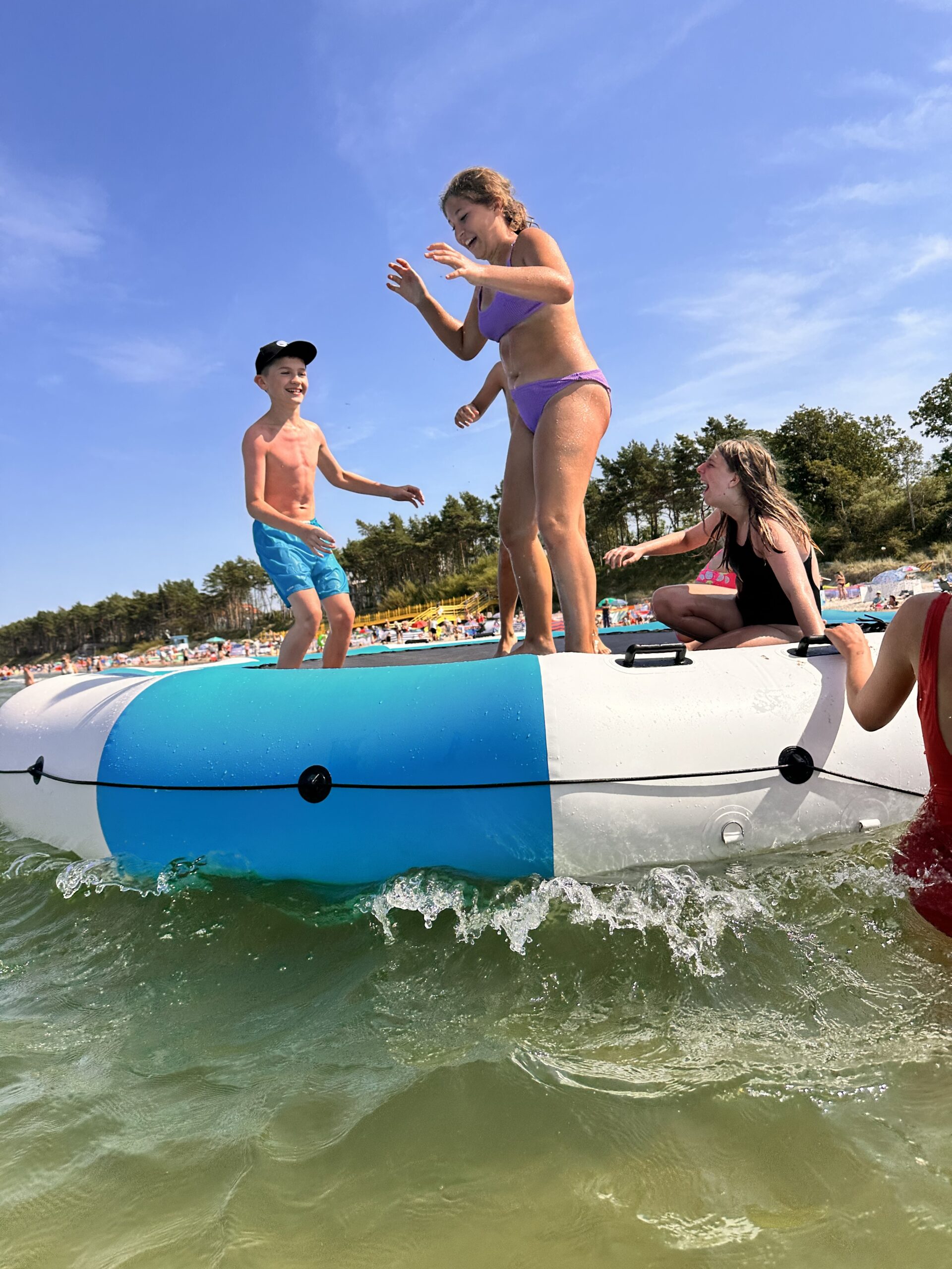 Bezpieczna strefa aktywności – katamaran, deska SUP i trampolina wodna.