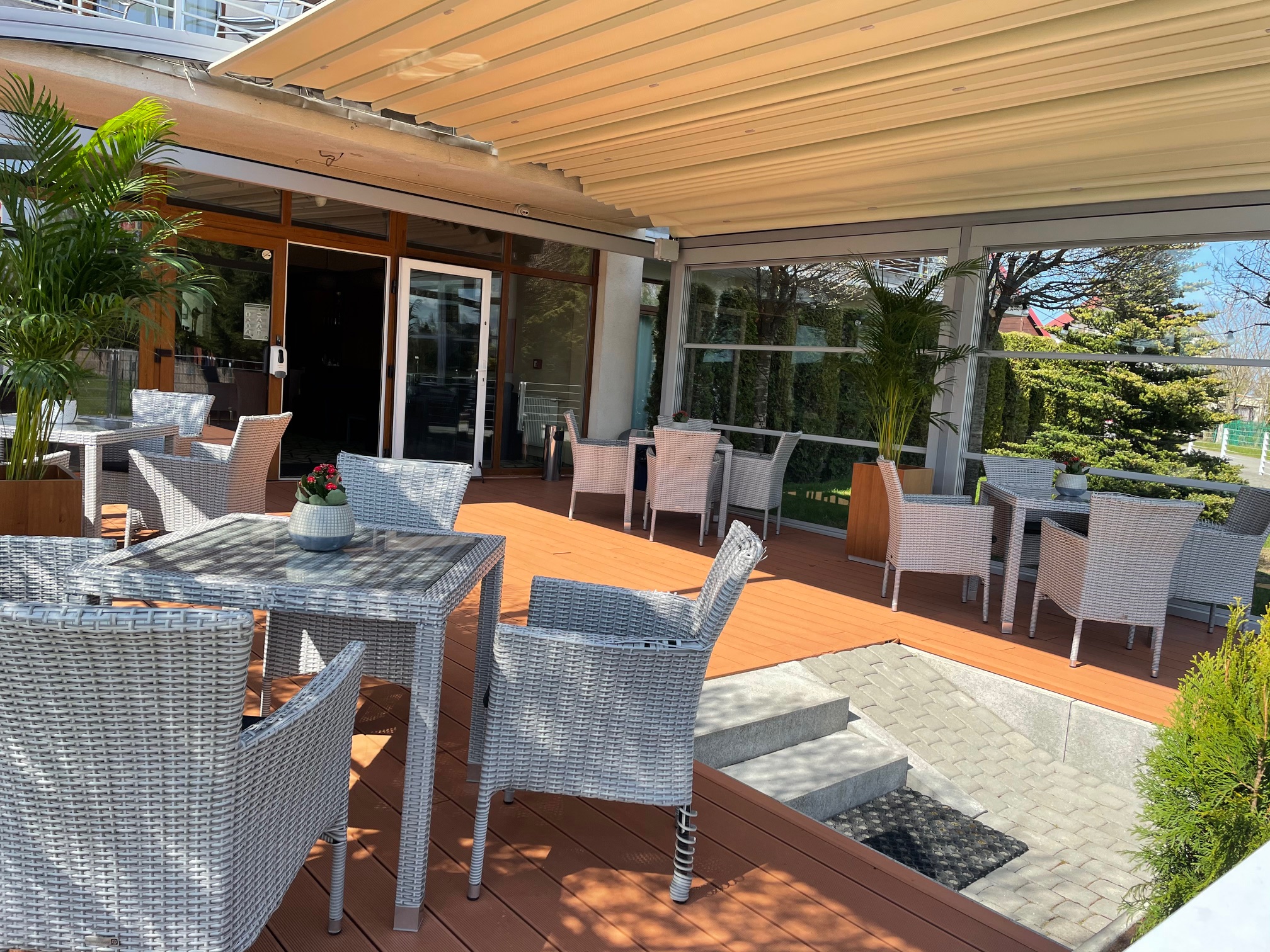 Pyszne posiłki śniadania w formie bufetu szwedzkiego , obiadokolacje serwowane z dwóch dań . W lobby serwowane są podstawowe przekąski stripsy , zapiekanki, hot dog , frytki, piwo , napoje itp Posiłki można spożywać na świeżym powietrzu na tarasie z zamykanym i otwieranym dachem.